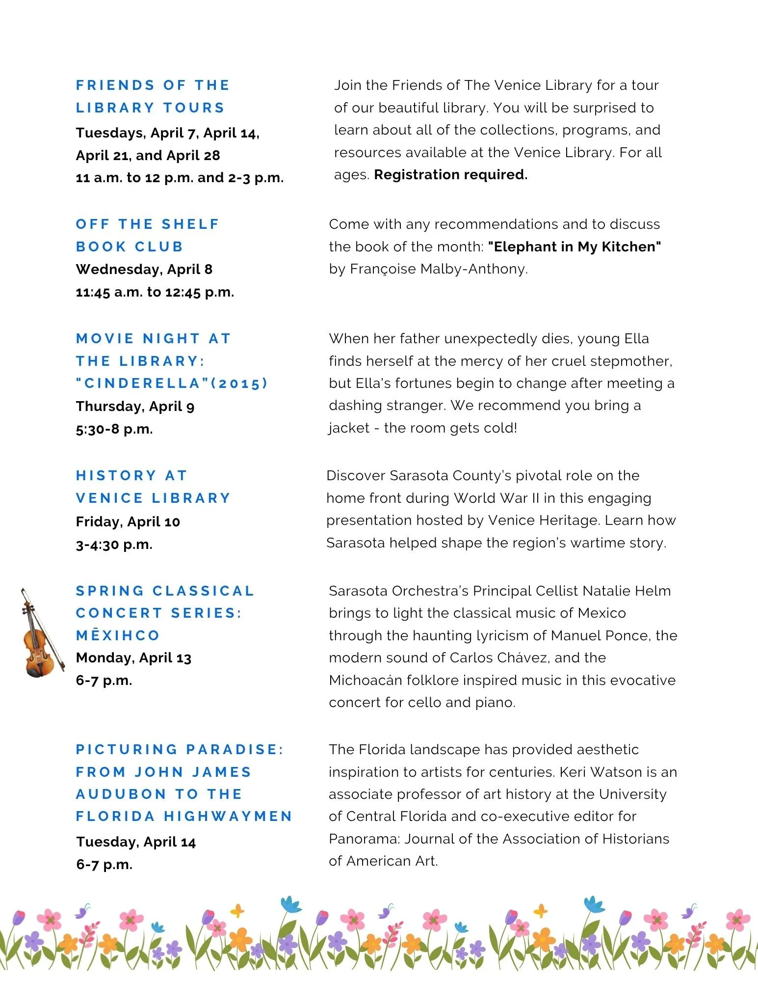 April Calendar of Events