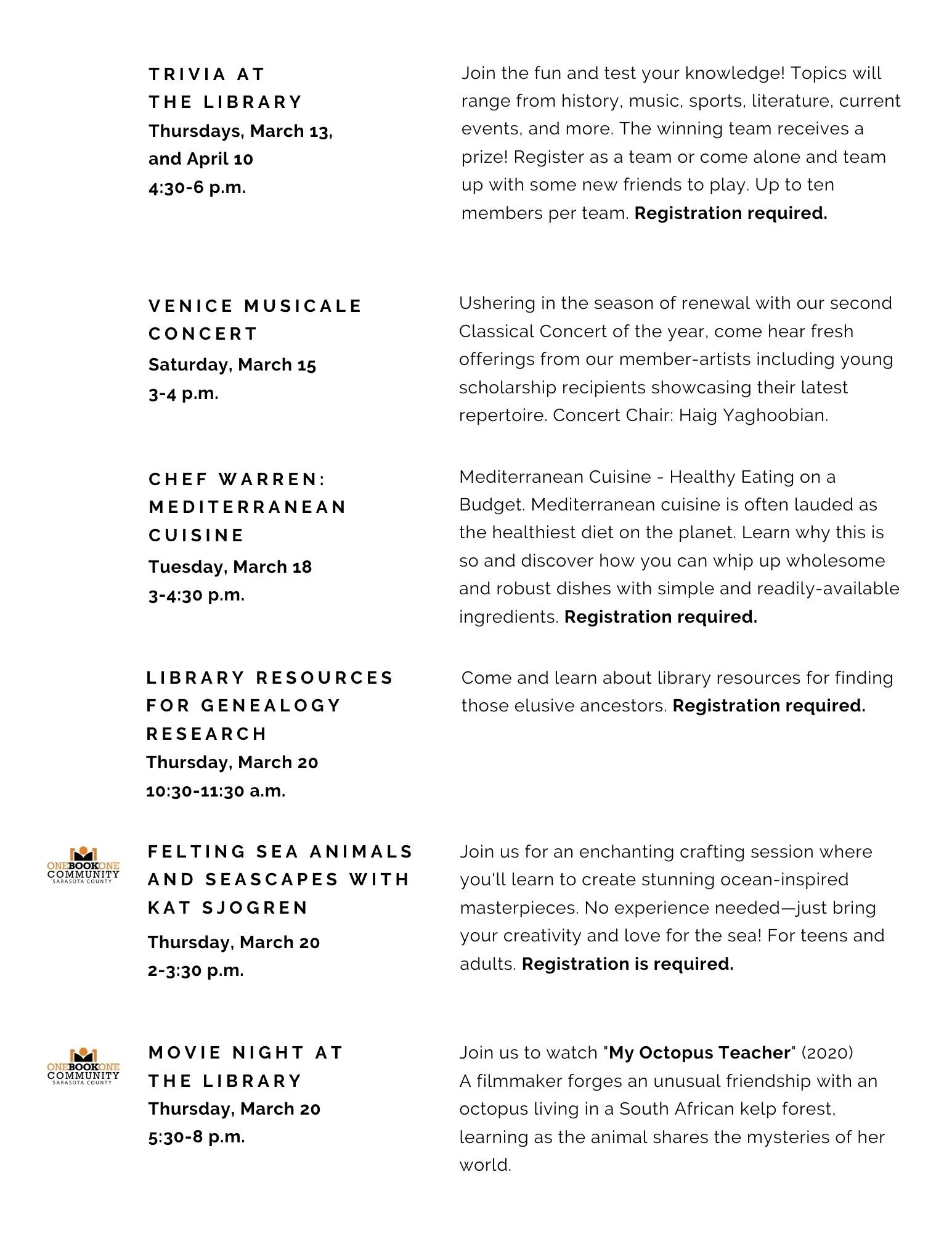 March Calendar of Events Feb 26 Written By Karen Murphy So many fun, educational and exciting events scheduled for March. Have fun! Karen Murphy